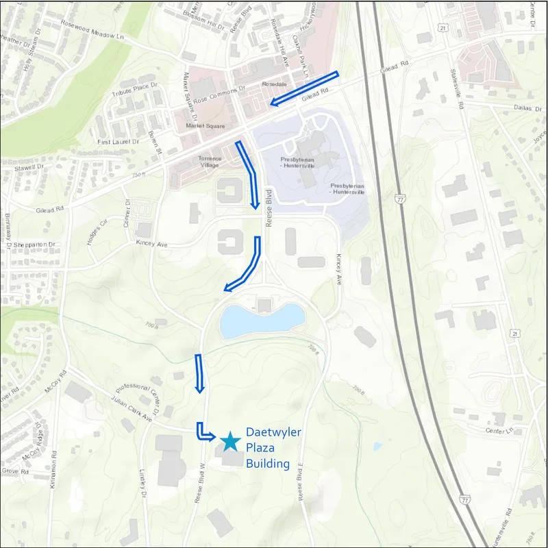 Directions from I-77 at Exit 23 (Gilead Rd):